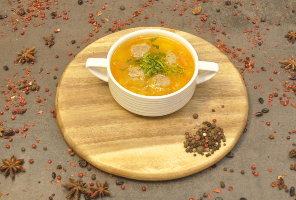 Грудка куриная, картофель, лапша, специи, перец. Белки: 4,3/ Жиры: 2,5/ Углеводы: 5,7/ Ккал: 62.2